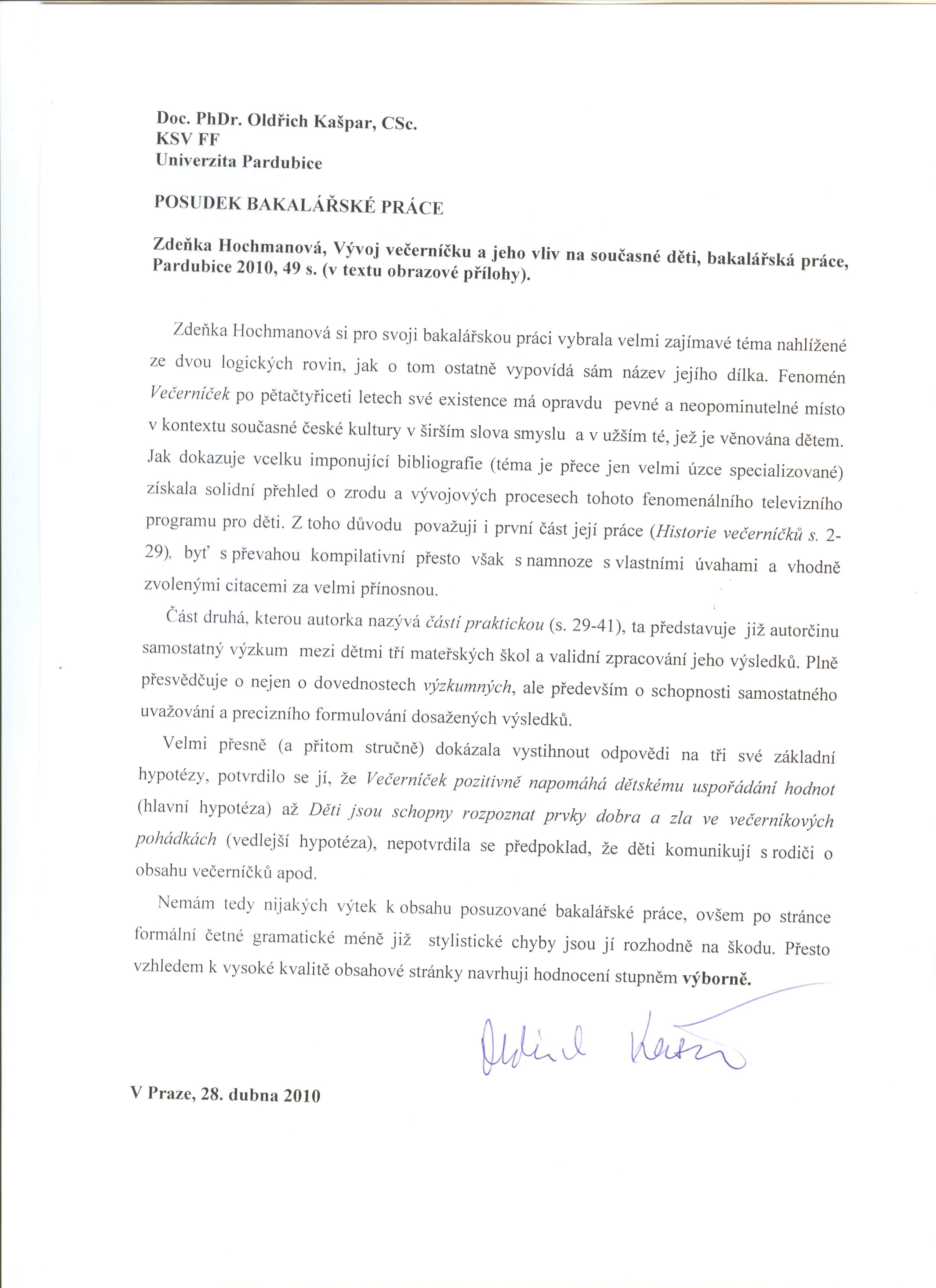 Závěrečná bakalářská práce pojednáva o celkovém vývoji večerníčku (tj.historii, tvůrcích, kontextu doby i jednotlivých pohádkových seriálech), televizním fenoménu provázejícím generace dětí a dospělých. V plynulé návaznosti na předešlé se druhá část práce zaměřuje na souhrn doprovodných prvků, týkající se večerníčku: vliv televize, pohádka v dětském světě, socializace. Třetí částí je doplňující výzkum snažící se odhalit vliv večerníčku na hodnotové uspořádání předškolních dětí.