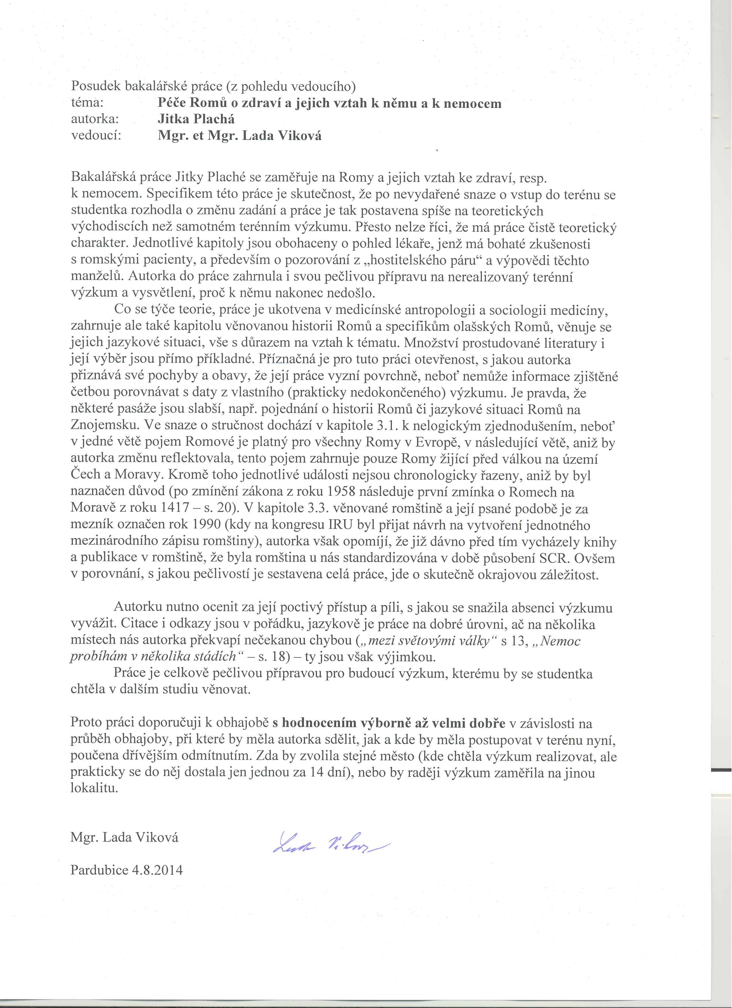 Bakalářská práce se zabývá vztahem Romů ke zdraví. Jsou v ní zahrnuty obě hlavní subetnické skupiny Romů v České a Slovenské republice, skupiny takzvaných slovenských a olašských Romů. Je zde uveden i stručný původ Romů a jsou charakterizovány zmiňované skupiny Romů. V odborné literatuře, která se týká zdravotnictví, pedagogiky, psychologie a antropologie jsou hledány odpovědi na to, jaký je současný vztah vybraných slovenských a olašských Romů v České, popřípadě Slovenské republice ke zdraví. Teoreticky je práce ukotvena především v medicínské antropologii a dále v sociologii medicíny.