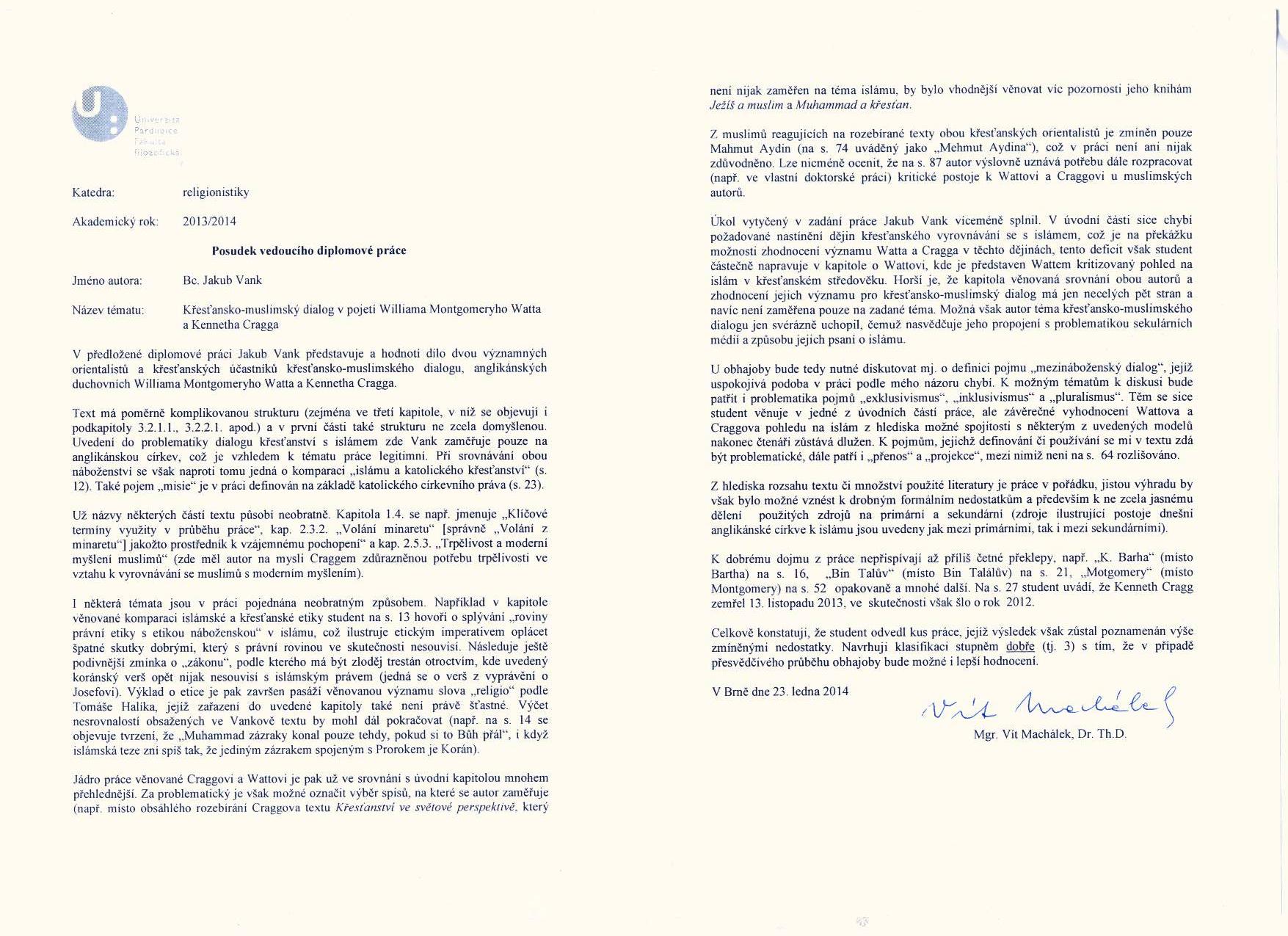 Publikace: Křesťansko-muslimský dialog v pojetí Williama Montgomeryho Watta a Kennetha Cragga