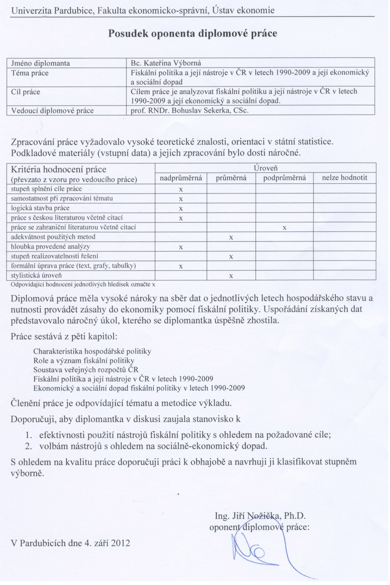 Diplomová práce s názvem "Fiskální politika a její nástroje v letech 1990 - 2009 a její ekonomický a sociální dopad" je zaměřena na fiskální politiku.