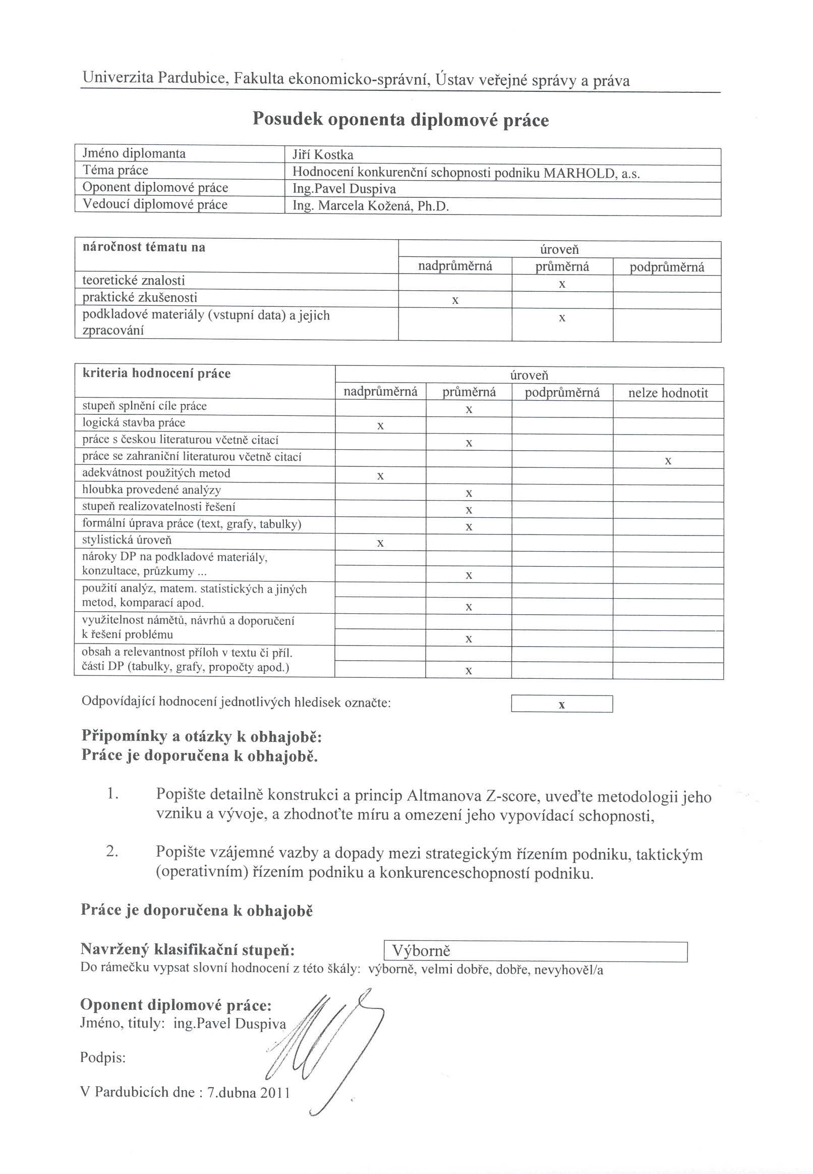 Publikace: Hodnocení konkurenční schopnosti podniku Marhold, a.s.