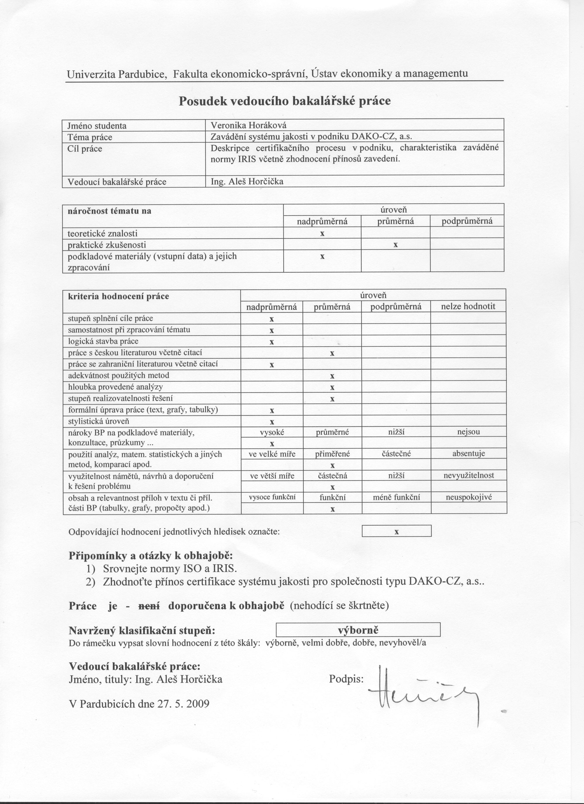 Publikace: Zavádění systému jakosti v podniku DAKO-CZ, a.s.